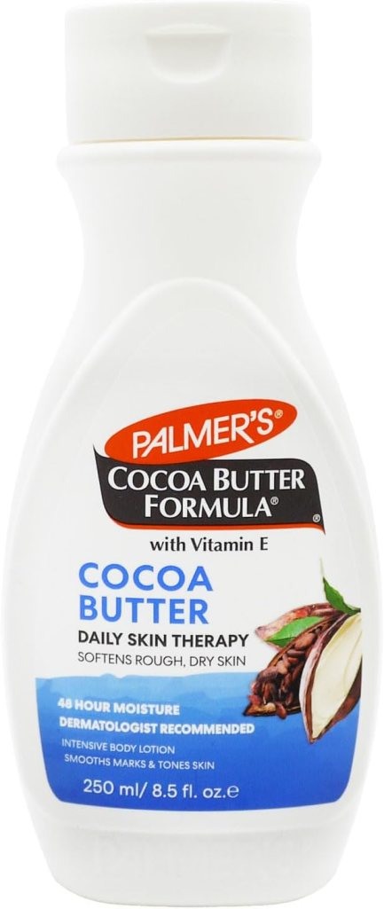 Want more for overall body nourishment? I love to drench my body after a hot shower in my tiny shower with Palmer’s Cocoa Butter Body Lotion. I feel it works to soften any rough, dry skin with it’s rich blend of cocoa butter and vitamin E. Another product with a distinct smell, being cocoa butter, yummy!